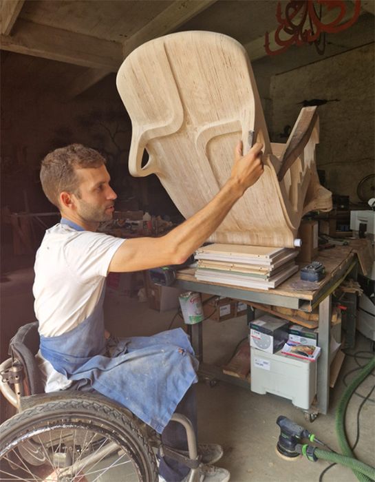 Недостатка в проектах нет. Несколько месяцев назад он летал в Калькутту, чтобы навестить сестёр Миссионерок милосердия. Эта поездка потрясла его до глубины души: «Я был в своём супер-кресле, которое позволило мне отправиться на другой конец мира, и столкнулся с людьми, такими же, как я, которые живут в интернате и вообще не имеют своего кресла! Именно из этого опыта родился проект по созданию красивых, удобных и недорогих деревянных кресел».