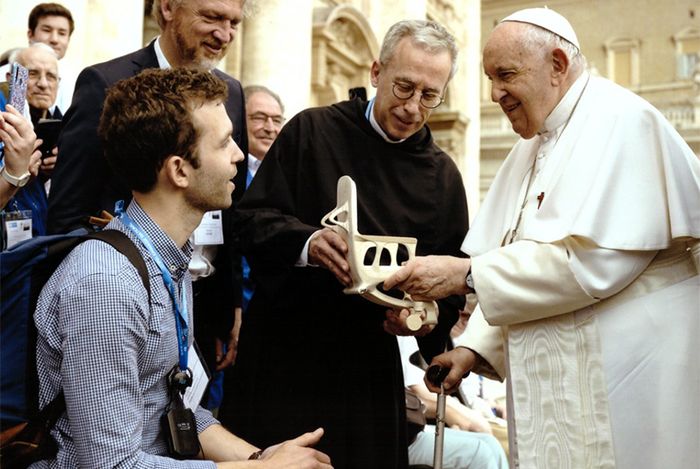 Успех пришёл в Париже, но также и онлайн. В октябре 2022 года Поль поделился видео, которое за несколько дней набрало тысячи просмотров и помогло завязать множество контактов. Затем он создал ещё одну – и ещё лучшую, коляску для себя, и был готов к следующему вызову своему мастерству. Вскоре он увидел Папу Франциска в инвалидной коляске и понял – вот она новая цель: кресло-коляска для Папы!