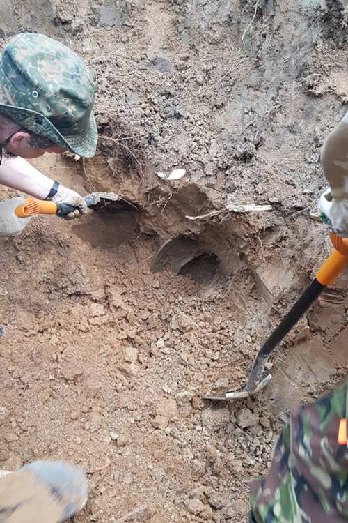 Нам пашанцавала, што званы ляжалі пад вялікай кучай зямлі, якую калісьці насыпаў экскаватаршчык, а папярэднія шукальнікі пад ёй капаць не сталі. Пра тое, каб даставаць званы праз раскапаны ў сцяне лаз, не магло быць і гаворкі: калі б уся гэтая куча бухнула на таго, хто там працаваў, нават агульнымі намаганнямі адкапаць яго мы б не змаглі. Вырашана было здымаць пласт грунта, які ў 60-х гадах насыпаў экскаватар.