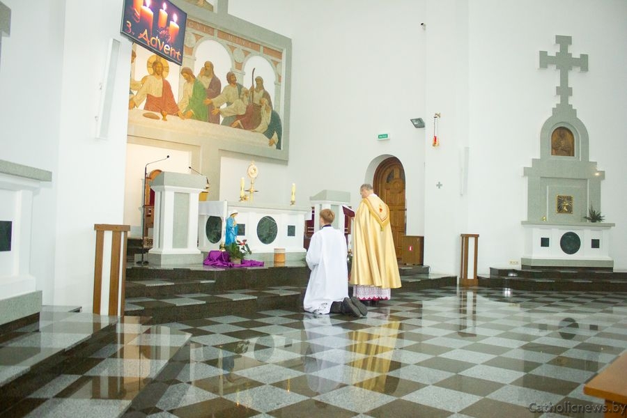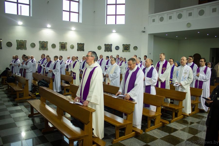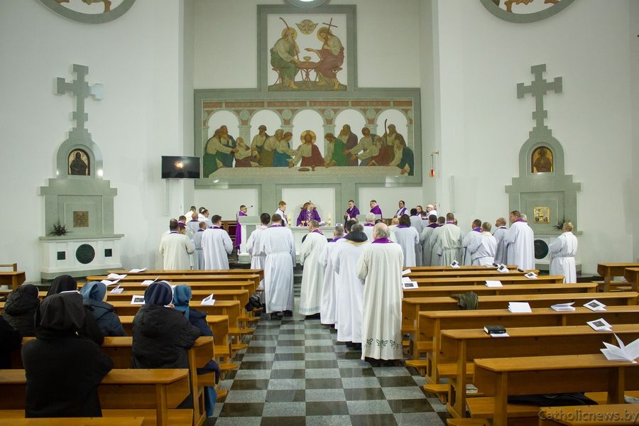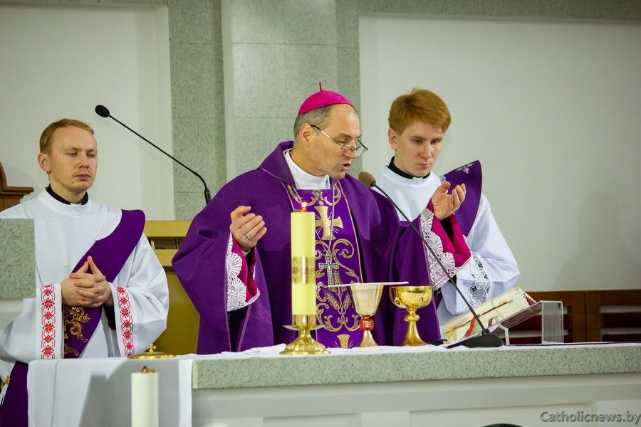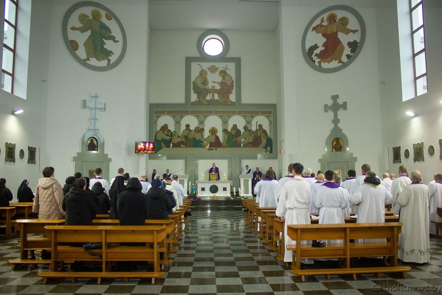 Перад святой Імшой, якую цэлебраваў пастыр Віцебскай дыяцэзіі біскуп Алег Буткевіч, была супольная малітва брэвіярыя і асабістая ў цішыні ў прысутнасці Езуса ў Найсвяцейшым Сакраманце.