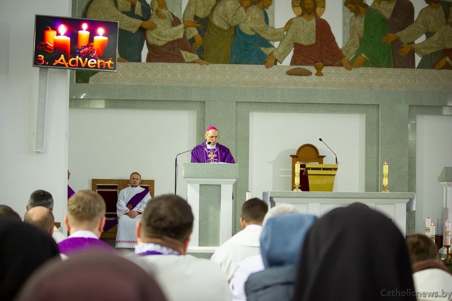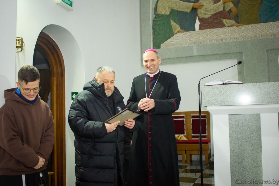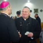 Спачатку Яго Эксцэленцыя прывітаў усіх і зазначыў, што гэтая сустрэча яднае прысутных. “Маем добрую нагоду сустрэцца разам, каб павіншаваць адзін аднаго і перажыць самім. Каб не толькі рыхтаваць і дапамагаць людзям перажываць святы, але і самім адчуць гэтую блізкасць і радасць Божага Нараджэння. Каб у нашым служэнні для людзей, асабліва ў гэты перыяд, мы перад усім гэтую ласку шукалі і прасілі аб ёй для нас саміх, не занядбоўваючы ўласнае збаўленне душы і сэрца”, — зазначыў біскуп Алег.