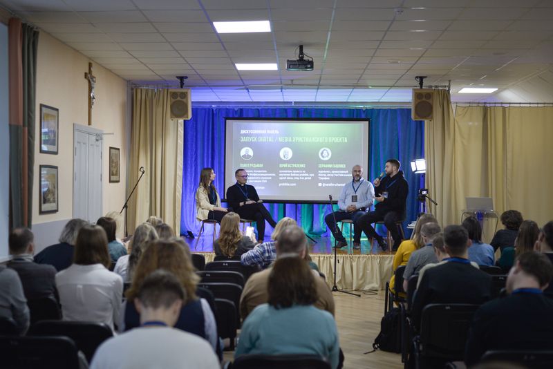 Предпоследним пунктом программы стала дискуссионная панель. Приглашенные гости, представители различных конфессий и основатели христианских проектов, поделились опытом запуска и развития христианских медиапроектов. Отец Павел Рудзман рассказал об истории Инстаграм-проекта «#кофесосвященником», Юрий Остраленко – о портале для интересного изучения Библии probibli.com, журналист и православный блогер Серафим Сашлиев – о YouTube-канале «Серафим».