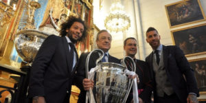 В начале короткой торжественной церемонии Флорентино Перес поблагодарил своих футболистов за тяжелый труд. «Вы показали, что благодаря коллективному труду можно сделать то, что многие считали невозможным, то есть завоевать кубок Лиги чемпионов трижды подряд».