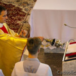 Перад пачаткам працэсіі адбылася святая Імша ў катэдральным касцёле, якую ўзначаліў біскуп Віцебскай дыяцэзіі Алег Буткевіч. Ардынарый прывітаў усіх прысутных, асабліва падзякаваў тым, хто прыехаў здалёк, каб падзяліцца сведчаннем сваёй веры. «Разам з усёй дыяцэзіяй адзначаем урачыстасць сёння, у суботні дзень, каб мець магчымасць прайсці вуліцамі Віцебска – сталіцы нашай вобласці, каб Езус Хрыстус прысутны сярод тых, хто ў яго верыць, прысутны ў знаках хлеба і віна мог блаславіць горад і дыяцэзію, але таксама і тых, хто чакае, шукае і патрабуе Яго міласэрнасці, любові і прабачэння».