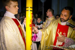 Падчас гаміліі ксёндз пралат паразважаў над таямніцай святла — адным з вялікіх знакаў, якім характарызуюць літургічнае святкаванне Пасхальнай вігіліі. “У Пасхальную вігілію, у ноч новага стварэння, Святы Касцёл паказвае нам таямніцу святла вельмі асаблівым і сціплым сімвалам – пасхальнай свечкай. Гэта святло жыве сілай уласнай ахвяры. Як? Свечка згарае, даючы нам святло; яна спажывае сябе для нас. Гэта так выдатна адлюстроўвае пасхальную таямніцу Хрыста, які аддае сябе і, такім чынам, дае вялікае і непагаснае святло ўсім нам. Святло гэтай свечкі дае нам агонь, які з’яўляецца сілай, якая фармуе свет, якая пераўтварае і змяняе”.