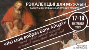 Запрашаем мужчын і юнакоў прыняць удзел у духоўных практыкаваннях на тэму “Якім я ўяўляю сабе Бога Айца?”, якія адбудуцца з 17 па 19 лістапада 2023 года ў касцёле Маці Божай Шкаплернай у Мядзелі (вул. Міра 6).
