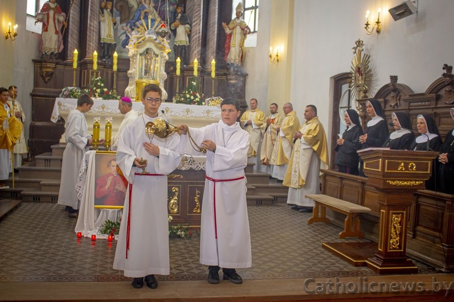 Перад Імшой сабраным вернікам была прадстаўлена прэзентацыя пра жыццёвы шлях святога арцыбіскупа, а таксама пра заснаванне і служэнне Кангрэгацыі сясцёр францішканак.