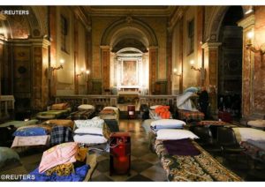 У сувязі з халодным надвор’ем у Рыме старажытны касцёл св. Калікста адкрыў свае дзверы для бяздомных, даючы ім магчымасць для начлегу. Разам з сумежнымі тэрыторыямі ён з’яўляецца экстратэрытарыяльнай уласнасцю Апостальскай Сталіцы. 7 студзеня 2017 года тут былі ўстаноўлены ложкі і абагравальныя прыстасаванні, паведамляе Ватыканскае радыё.