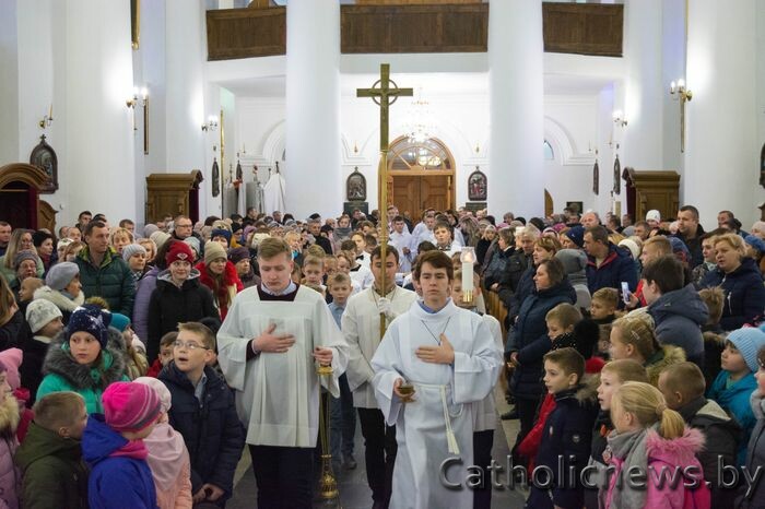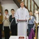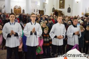 Падчас святой Імшы для дзяцей да супольнасці кандыдатаў, якія рыхтуюцца да міністранцкай службы далучылася 9 хлопцаў.