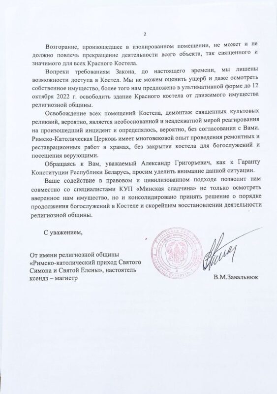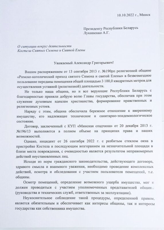 - Парафія накіравала на адрас Прэзідэнта Рэспублікі Беларусь адкрыты ліст, які прадстаўлены ніжэй.