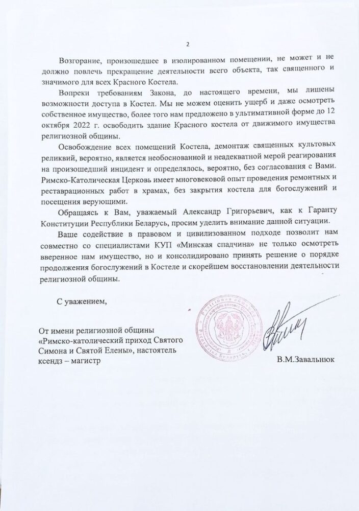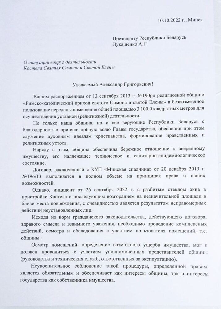 - Парафія накіравала на адрас Прэзідэнта Рэспублікі Беларусь адкрыты ліст, які прадстаўлены ніжэй.