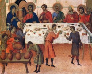 З гэтай жа нагоды Марыя зноў звярнулася да адказных за святкаванне вяселля. Яна адчула волю Сына — прыняць Яе просьбу. Дзеянні Езуса паказваюць, што Ён адказаў на просьбу маці.