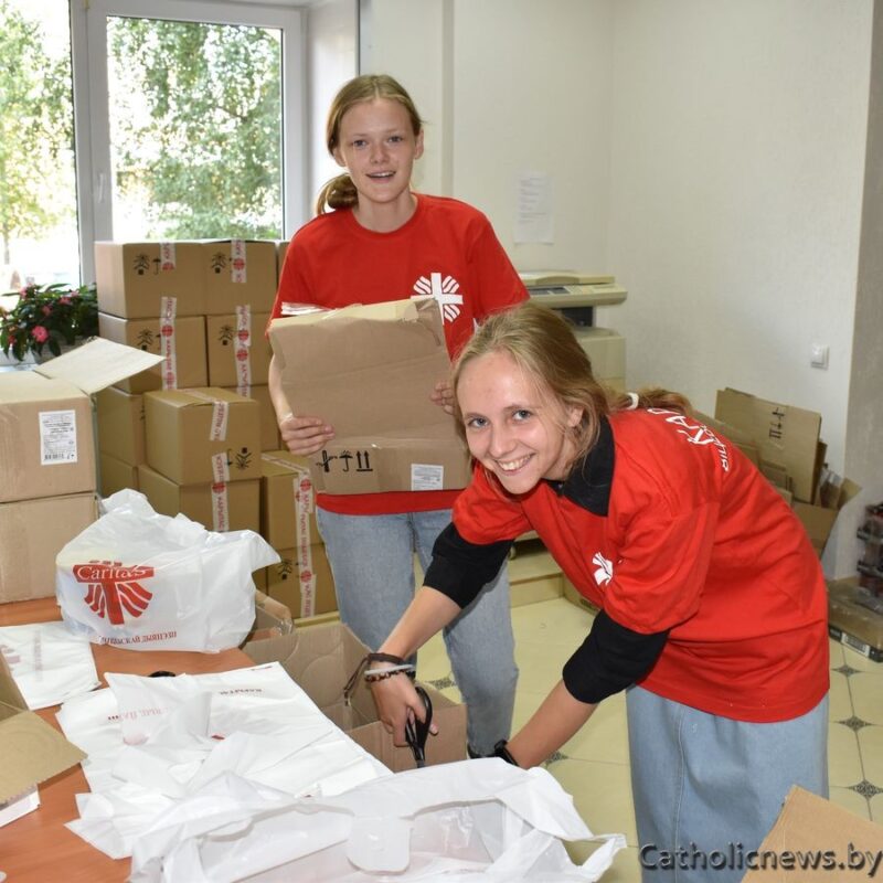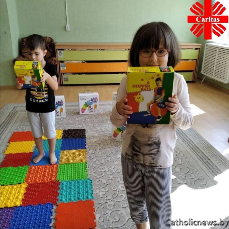 - “Карытас” ажыццяўляе дапамогу ўразлівым групам дзяцей, у тым ліку са шматдзетных, няпоўных, апякунскіх, малазабяспечаных сем’яў, дзецям з інваліднасцю. На працягу апошняга года былі закупленыя 83 наборы тэрапеўтычных матэрыялаў для дзяцей з інваліднасцю, праведзена пяць дабрачынных мерапрыемстваў у карэкцыйных цэнтрах Віцебскай вобласці (Лепель, Гарадок, Сянно, Лёзна, Наваполацк). З нагоды новага навучальнага года дзеці атрымалі 150 заплечнікаў і 100 пар абутку.