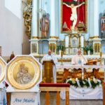 Разам з пробашчам парафіі святую Імшу канцэлебраваў духоўны кіраўнік перэгрынацыі – ксёндз Станіслаў Станеўскі. Святар нагадаў, што Маці, Якая заўсёды бачыць і чуе нашыя просьбы, хоча, каб Яе дзеці, а гэта мы з вамі, былі шчаслівымі. “Так, як нашыя продкі калісьці прыходзілі да Яе, каб выпрасіць дапамогі, так і цяпер Яна прыбывае да вас, каб заахвоціць кожнага прыняць найвялікшы скарб, які Яна прынесла – Езуса Хрыста, адкрыць свае сэрцы і запрасіць Яго ў сваё жыццё, будаваць кожную хвіліну свайго жыцця разам з Езусам”, – заахвоціў ксёндз Станіслаў.