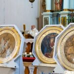 У гэты дзень прысутнічала таксама мастачка з Маладзечна Ядвіга Сенько, чыёй рукой былі напісаны прыбыўшыя спісы цудадзейных абразоў. Яна распавяла, як першапачаткова для аўтамабільнай малітоўна-пакутніцкай пілігрымкі межамі нашай краіны, якая адбылася з 12 па 18 чэрвеня 2021 года, было напісана 8 спісаў Багародзічных абразоў. У тым ліку адзін з абразаў быў уключаны па просьбе тагачаснага Апостальскага адміністратара Мінска-Магілёўскай архідыяцэзіі біскупа Казіміра Велікасельца – выява Маці Божай Гомельскай. Гэта спіс абраза Маці Божай Снежнай, аднаго з найстаражытнейшых абразоў Багародзіцы ў свеце, які захоўваецца ў Рымскай базыліцы Santa Maria Maggiore. Яго “беларускі арыгінал” размешчаны ў алтары капліцы, што знаходзіцца каля новабудоўлі – касцёла Унебаўзяцця Найсвяцейшай Панны Марыі ў Гомелі.