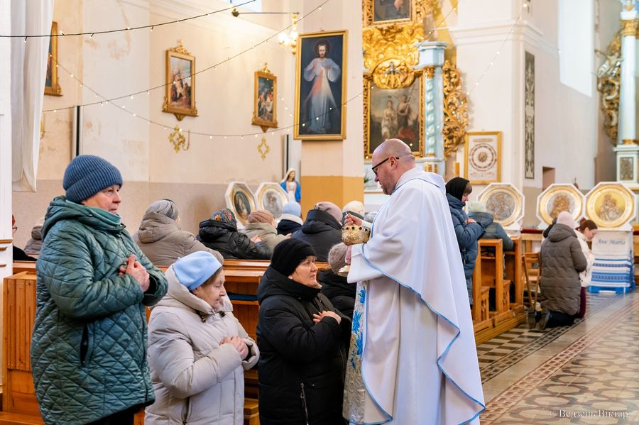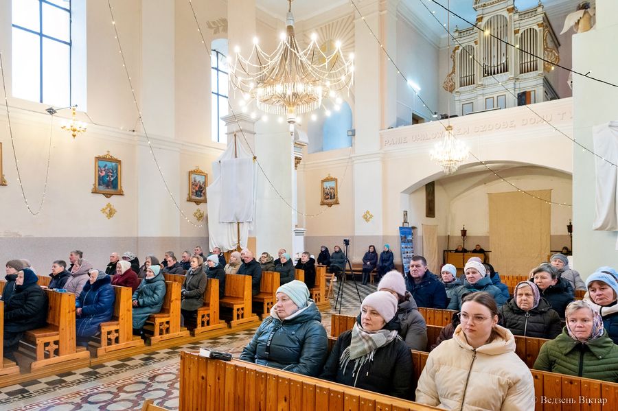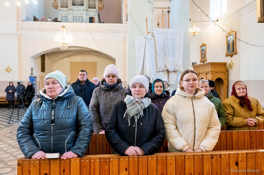 “А сёння, у час Адвэнту, мы чаканем разам з Марыяй прышэсця Езуса Хрыста не толькі ў гэты свет, але ў нашыя сэрцы, дамы і сем’і. Асаблівым чынам заклікаем, каб Маці Божая нам дапамагала крочыць насустрач Яе Сыну Езусу Хрысту, да збаўлення, да супакою нашых душ”, – дадаў ксёндз Алег.