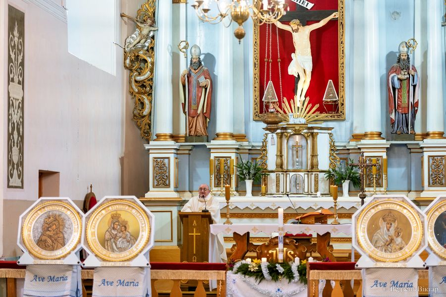 Разам з пробашчам парафіі святую Імшу канцэлебраваў духоўны кіраўнік перэгрынацыі – ксёндз Станіслаў Станеўскі. Святар нагадаў, што Маці, Якая заўсёды бачыць і чуе нашыя просьбы, хоча, каб Яе дзеці, а гэта мы з вамі, былі шчаслівымі. “Так, як нашыя продкі калісьці прыходзілі да Яе, каб выпрасіць дапамогі, так і цяпер Яна прыбывае да вас, каб заахвоціць кожнага прыняць найвялікшы скарб, які Яна прынесла – Езуса Хрыста, адкрыць свае сэрцы і запрасіць Яго ў сваё жыццё, будаваць кожную хвіліну свайго жыцця разам з Езусам”, – заахвоціў ксёндз Станіслаў.