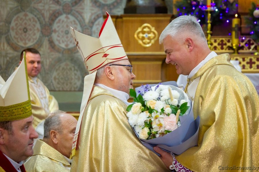 Шмат слоў падзякі і віншаванняў гучалі ў адрас святара-юбіляра ад арцыбіскупа Юзафа Станеўскага, дзяцей і моладзі, прадстаўнікоў розных парафіяльных супольнасцяў, землякоў з роднага Глыбокага. Таксама словы ўдзячнасці былі выказаны маці Алене за выхаванне сына-святара, якая прысутнічала на ўрачыстасці.