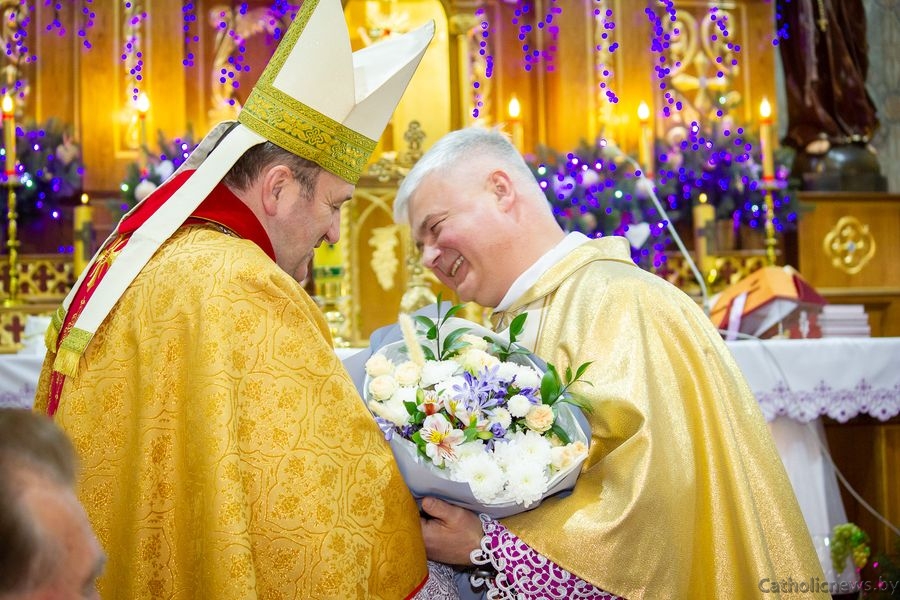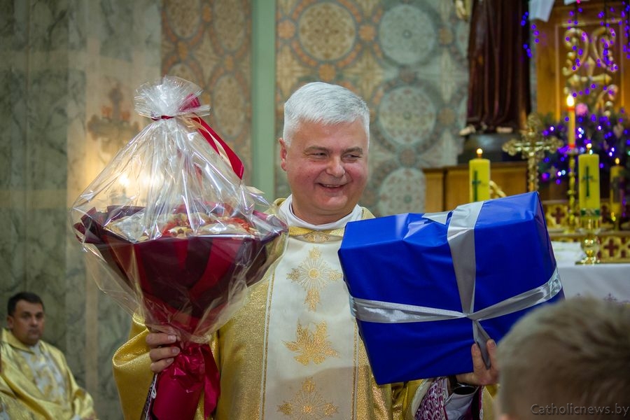 Шмат слоў падзякі і віншаванняў гучалі ў адрас святара-юбіляра ад арцыбіскупа Юзафа Станеўскага, дзяцей і моладзі, прадстаўнікоў розных парафіяльных супольнасцяў, землякоў з роднага Глыбокага. Таксама словы ўдзячнасці былі выказаны маці Алене за выхаванне сына-святара, якая прысутнічала на ўрачыстасці.
