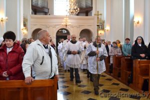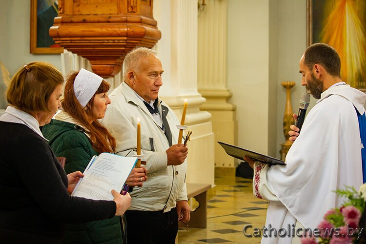 Іван Кароткін і Віталь Бяленік, дыякан Уладзіслаў Шарковіч, ксёндз Пётр Пятрага з Касцяневічаў, сёстры законныя з Глыбокага і Варапаева, а таксама айцы-аблаты Анджэй Юхневіч і Дзмітрый Занямонскі. Год таму айцы праводзілі тут святыя Місіі, а ў гэты дзень распачалі іх аднаўленне.