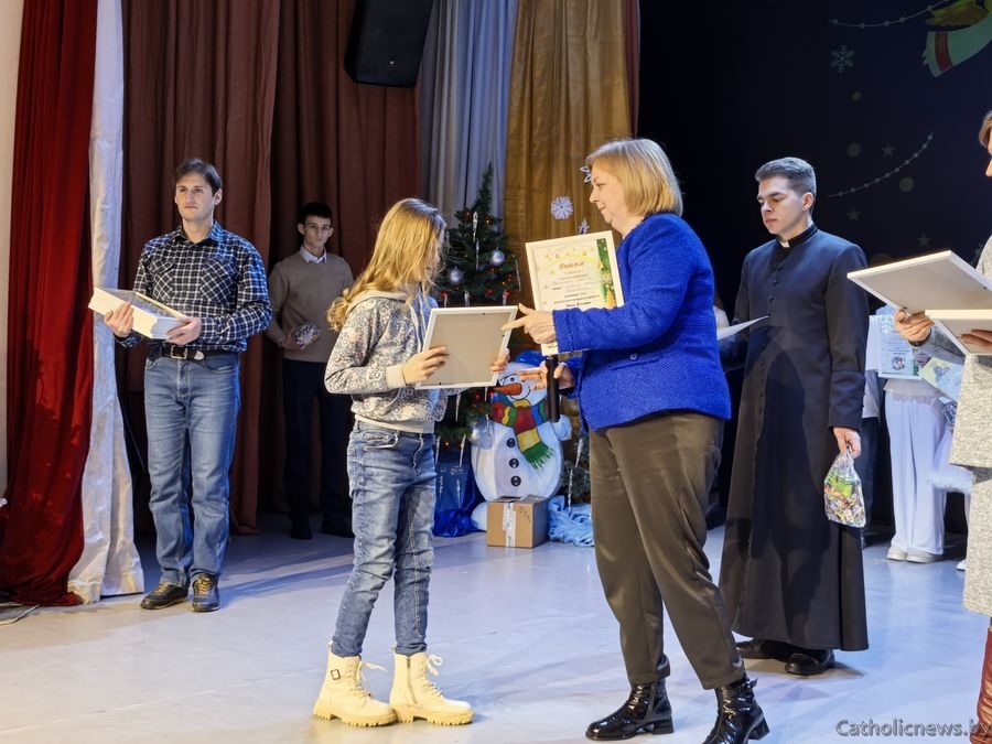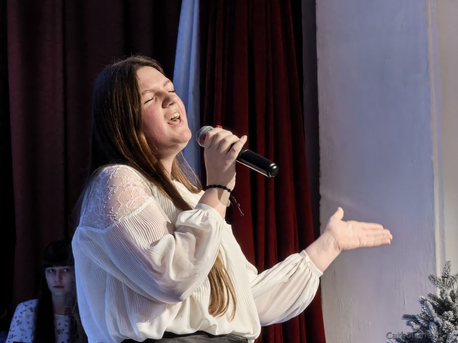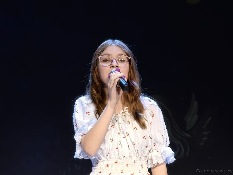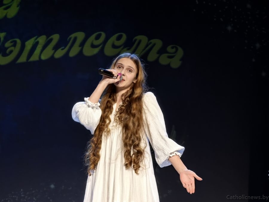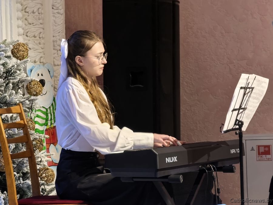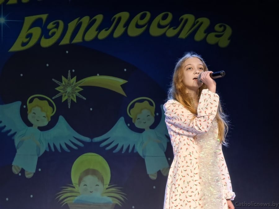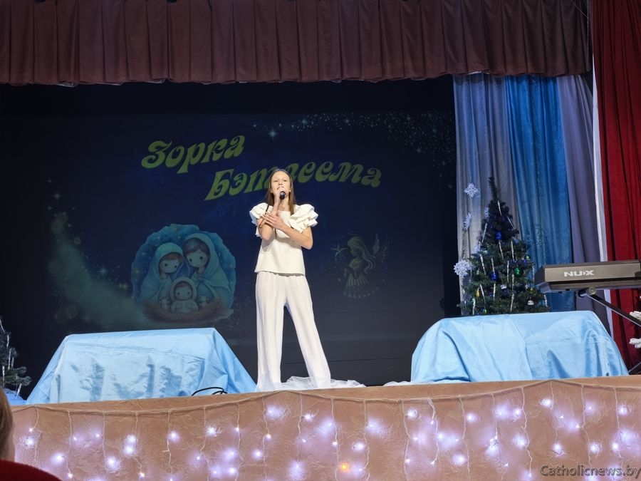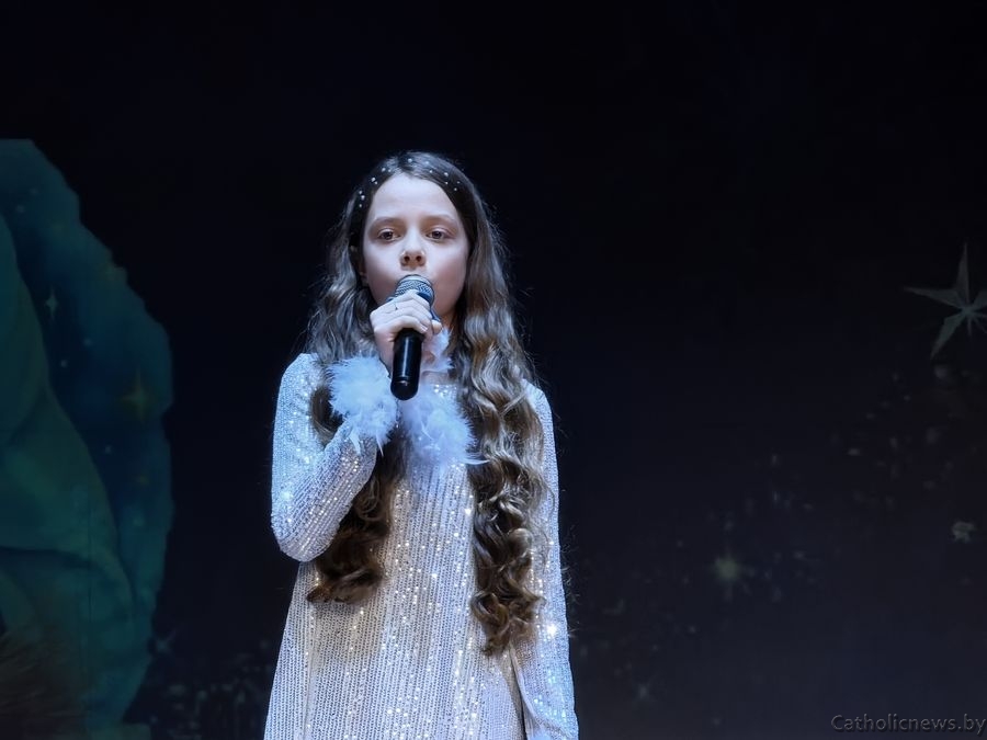 Драбовіч Сафія, удзельніца з Полацкай парафіі святога Андрэя Баболі прадставіла музычную кампазіцыю П’етра Бенчыні “Арыета” і заспявала калядку “Свеціць нам зорка”.