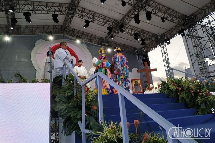 Да цэлебрацыі, якая распачалася спевам на ўваход у гонар Маці Божай Старажытнай — la Antigua — у рытме традыцыйнай лацінаамерыканскай самбы, далучыліся каля трохсот біскупаў, сярод якіх адказны за моладзь у беларускім епіскапаце біскуп Юзаф Станеўскі, а таксама больш за тысячу святароў.