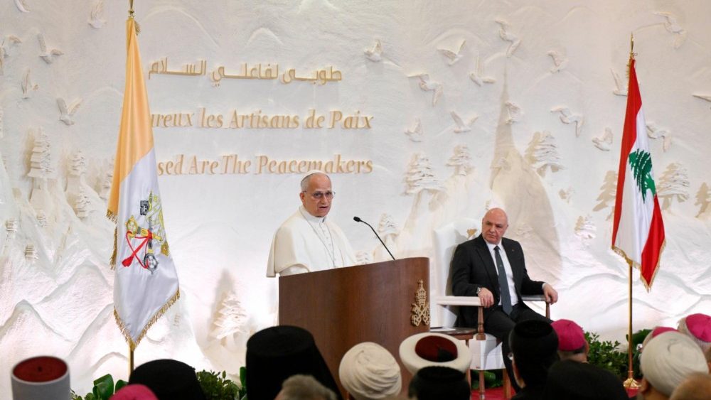 30 лістапада 2025 года Леў XIV распачаў сваё апостальскае падарожжа ў Ліван з сустрэчы з уладамі, прадстаўнікамі грамадзянскай супольнасці і дыпламатычнага корпусу, якое прайшло ў Прэзідэнцкім палацы ў Бейруце.