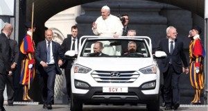 Папа Рымскі Францішак вітаў вернікаў на плошчы святога Пятра ў Ватыкане на новым папамабілі. Развітаўшыся з мадыфікаваным аўтамабілем Mercedes-Benz G-Class, ён перасеў на Santa Fe вытворчасці Hyundai, паведамляе ruskorinfo.ru. Паўднёвакарэйскія кампаніі Hyundai і Kia прадастаўлялі ў распараджэнне Папы аўтамабілі Soul і Carnival, калі ён наведваў Паўднёвую Карэю ў жніўні мінулага года.