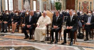 Папа падзякаваў за прафесіяналізм італьянскім паліцэйскім, якія займаюцца аховай плошчы св. Пятра і клапоцяцца аб бяспецы Пантыфіка падчас яго падарожжаў па тэрыторыі Італіі. 3 лютага 2022 года Пантыфік прыняў на аўдыенцыі кіраўніцтва і супрацоўнікаў Інспекцыі па ахове грамадскага парадку “Ватыкан”. Ён выказаў падзяку сваім гасцям за іх “непрыкметную і адначасова эфектыўную прысутнасць”, якая гарантуе бяспеку вернікам, што прыходзяць памаліцца ў ...