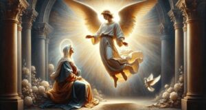Евангелле Лк 1, 26–38 У той час: Бог паслаў анёла Габрыэля ў горад галілейскі, які называўся Назарэт, да Дзевы, заручанай з мужам па імені Юзаф, з дому Давіда, а імя Дзевы — Марыя. Анёл, увайшоўшы да яе, сказаў: Вітай, поўная ласкі, Пан з Табою. Яна ж збянтэжылася ад словаў ягоных і разважала, што гэта за прывітанне. І сказаў Ёй анёл: ...