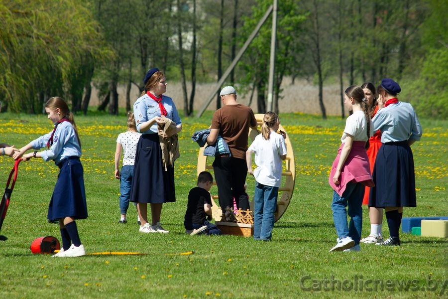 У гэты час дзеці бавіліся на падворку касцёла разам з каталіцкімі скаўтамі і скаўткамі.