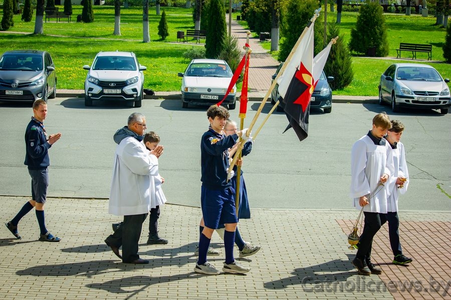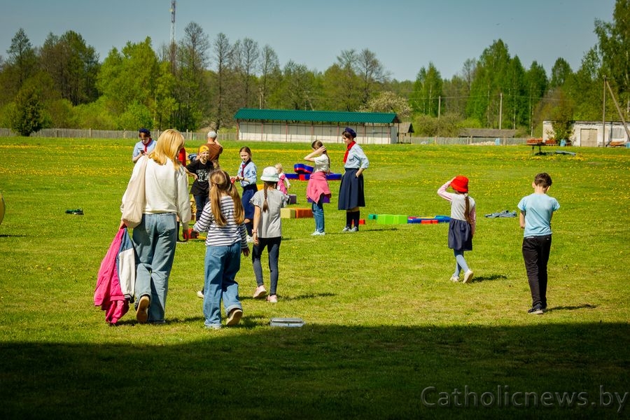 У гэты час дзеці бавіліся на падворку касцёла разам з каталіцкімі скаўтамі і скаўткамі.
