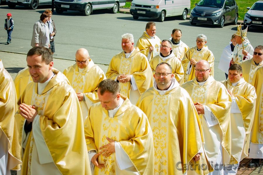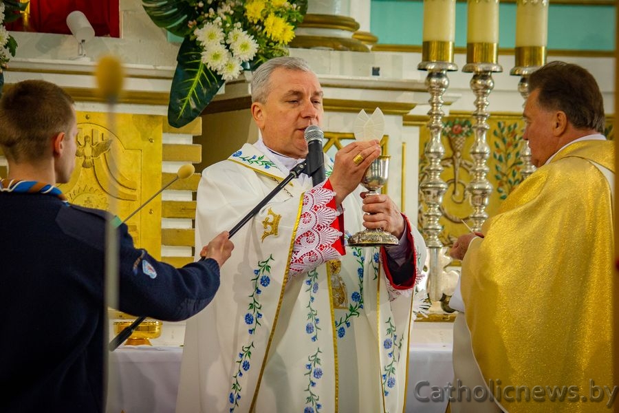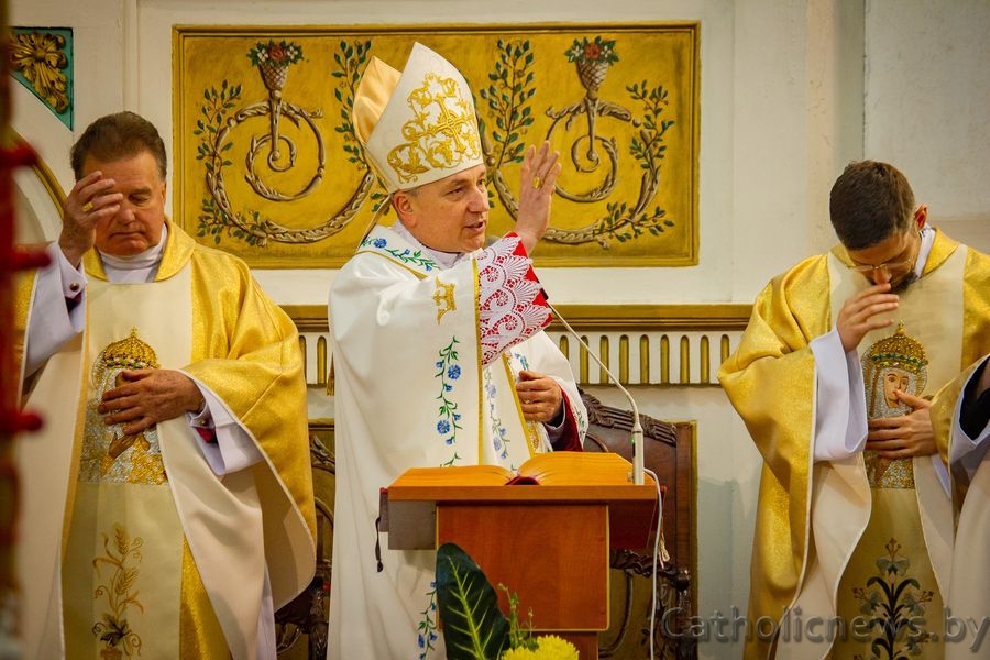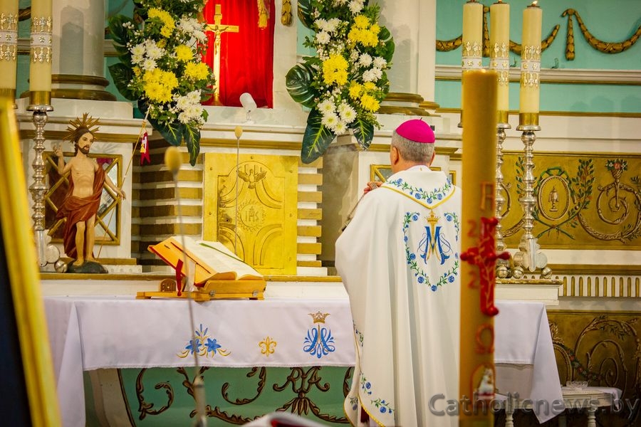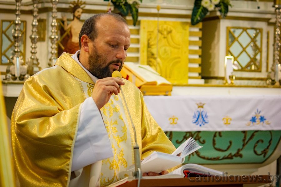 Апоўдні распачалася святая Імша, якую ўзначаліў дапаможны біскуп Мінаска-Магілёўская архідыяцэзіі Юрый Касабуцкі. Напачатку ён прывітаў прысутных святароў, а асаблівым чынам ксяндза Кшыштафа Сэрока — сакратара Апостальскай нунцыятуры ў Мінску.