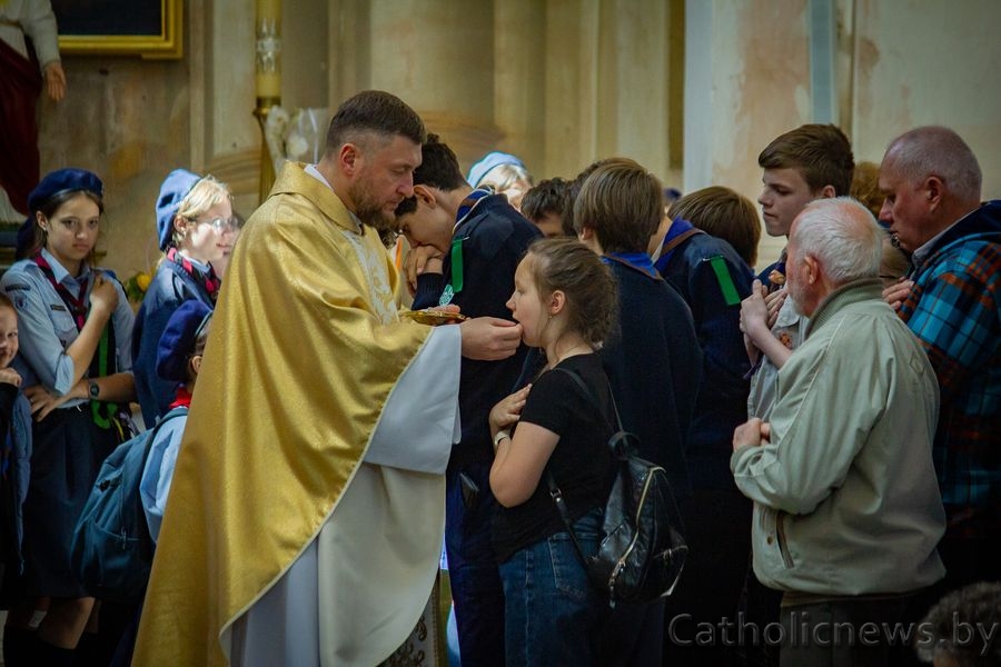 Святую Імшу ўпрыгожваў спевам хор “Effata” з мінскай парафіі Святога Яна Евангеліста і Святога Максімільяна Марыя Кольбэ, малітву верных падрыхтавалі ўдзельнікі руху факаляраў, працэсію з дарамі і разважанні да яе – супольнасць “Каштоўная пярліна”.
