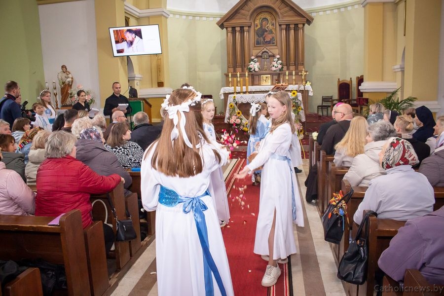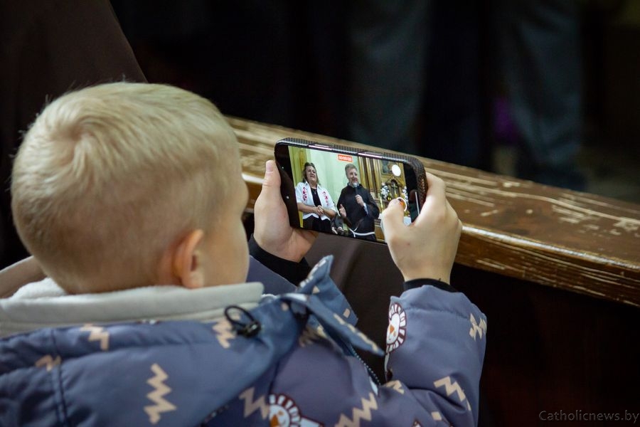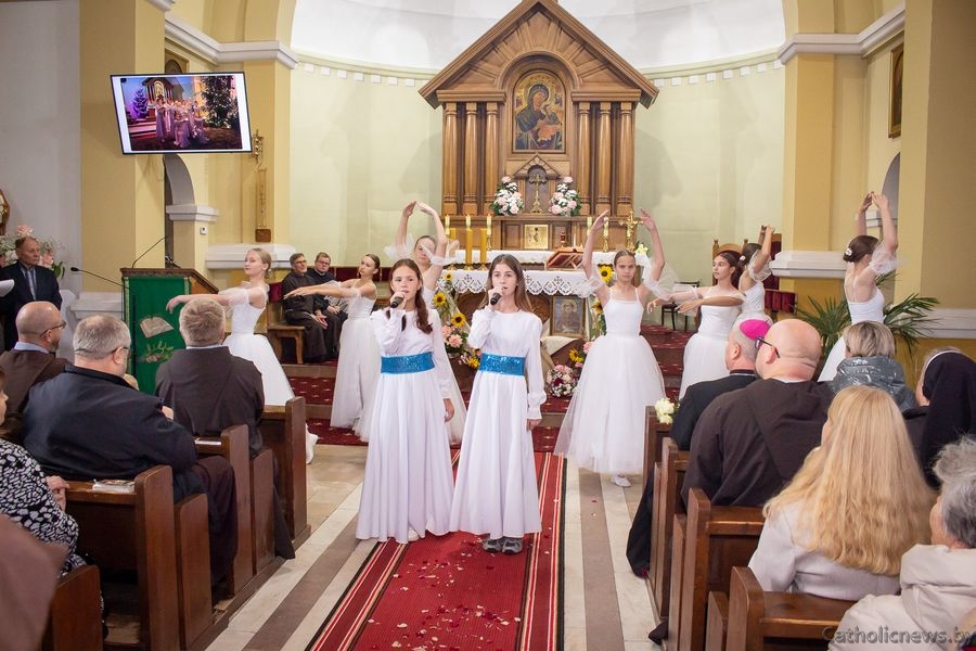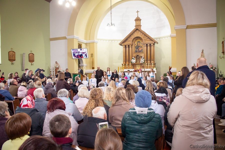 Дзеці, моладзь і старэйшыя парафіяне прадставілі прысутным відэапрэзентацыю са сведчаннямі пра гісторыю касцёла ад самага пачатку.