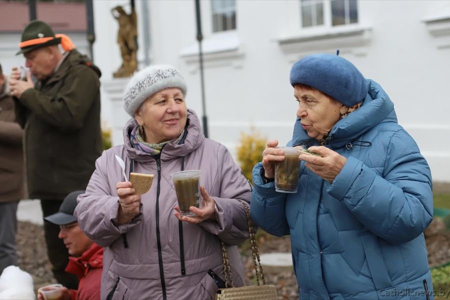 Завяршылася святая Імша асабістым бласлаўленнем біскупа. Іерарх асвяціў паляўнічых, іх сабак і транспартныя сродкі. Каларытна пасля свята ўпісалася шурпа (поліўка з ялавічыны ці то ласяціны, бульбай і прыправамі) ад турыстычнага комплекса «Заранка», бясплатная салодкая вата ад лепельскіх парафіян Арлоўскіх і яскравы гумар Пінскага біскупа Андрэя Зноскі.