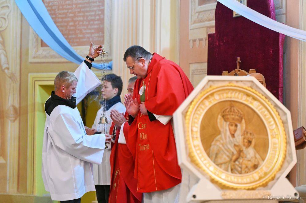 Напрыканцы набажэнства адбылася навэнна да святога Юды Тадэвуша з асабістымі просьбамі ад вернікаў, а завяршылася літургія, нягледзячы на моцны дождж, эўхарыстычнай працэсіяй вакол Лучайскай святыні і бласлаўленнем усіх прысутных Найсвяцейшым Сакрамантам.