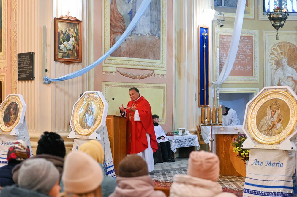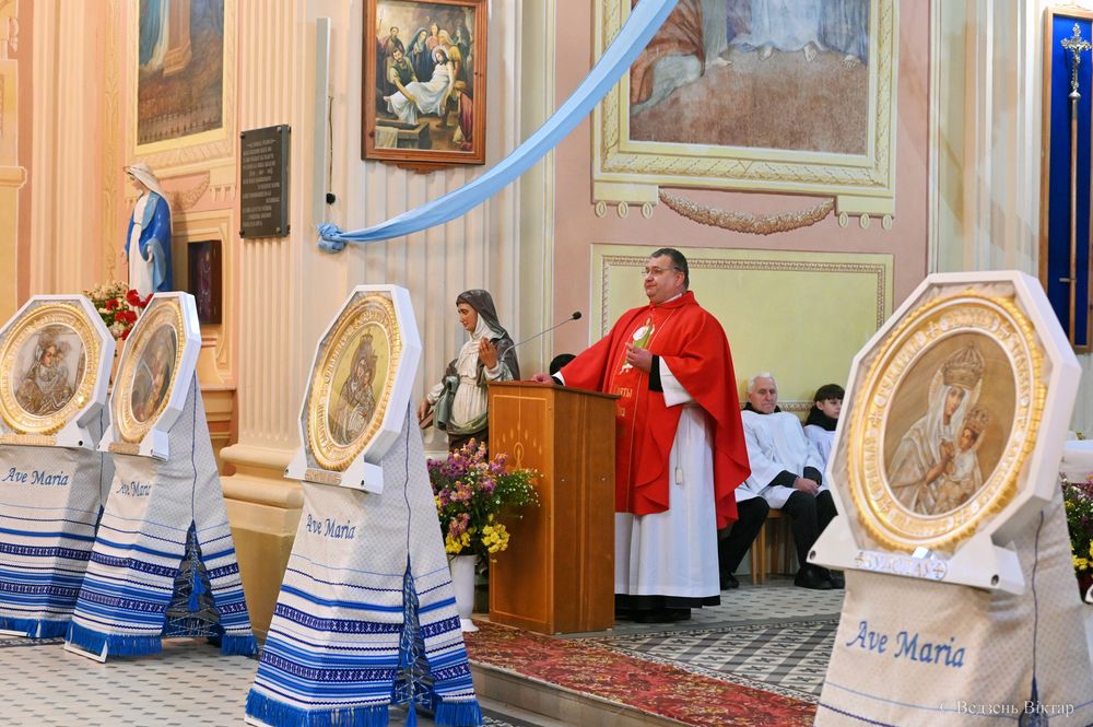 Ксёндз Уладзіслаў распавёў кароткую гісторю з перэгрынацыі Марыйных абразоў і параўнаў базілікі з брамай, праходзячы праз якую, мы набліжаемся да Езуса, да Найсвяцейшага Сакраманту, да святыняў, да споведзі і Божага бласлаўлення. “Санктуарыі з’явіліся не самі сабой, а таму, што людзі звярталіся да Багародзіцы ў розных патрэбах, і Маці Божая адказвала цудамі, аб’яўленнямі і клапацілася пра нашых продкаў”. Нагадаў святар, што “найвялікшыя цуды адбываюцца ў канфесіянале – на споведзі, калі людзі каюцца і вяртаюцца да Бога, калі душы людскія збаўляюцца. Для гэтага і прыйшоў Збавіцель, каб выратаваць кожнага з нас, а не толькі вылечыць фізічна…” – дадаў ксёндз прэлат.