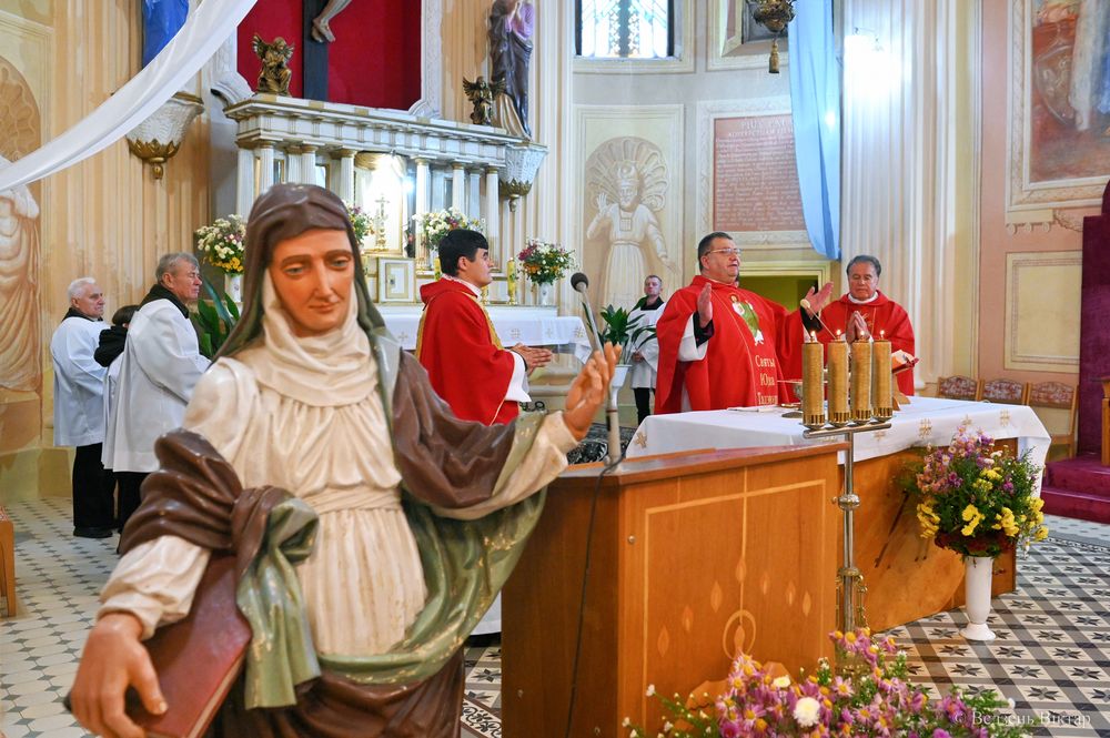 Разам з пробашчам парафіі ксяндзом Яўгенам Міхайлавым святую Імшу ўзначаліў ксёндз канонік Эдвард Нарадоўскі, пробашч парафіі ў Задарожжы, айцец Пётр Фарына OCD з Нарачы і ксёндз прэлат Уладзіслаў Завальнюк – ініцыятар перэгрынацыі.