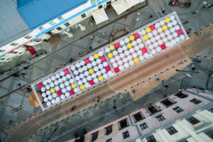 З дрона добра бачны контур былога бэнэдыкцінскага касцёла Святога Міхаіла Арханёла (XVII стагоддзе, канфіскаваны і знішчаны царскімі ўладамі да сярэдзіны XIX ст.), выяўлены пліткай іншага колеру ў часе нядаўняй рэканструкцыі вуліцы Камсамольскай у Мінску.