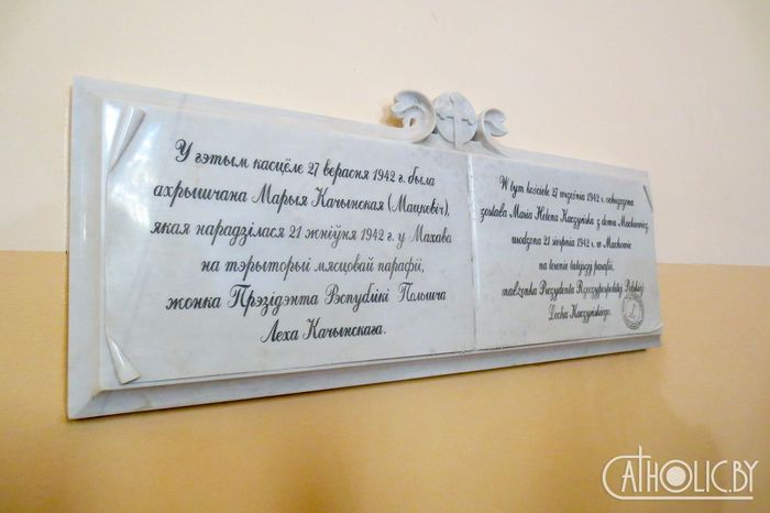 «У гэтым касцёле 27 верасня 1942 года была ахрышчана Марыя Качынская (Мацкевіч), якая нарадзілася 21 жніўня 1942 г. у Махаве на тэрыторыі мясцовай парафіі, жонка прэзідэнта Рэспублікі Польшча Леха Качынскага».