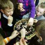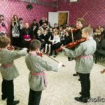Наступнай часткаю сустрэчы стаўся канцэрт інструментальнага ансамбля скрыпачоў пад кіраўніцтвам арганісткі парафіі Валянціны Казакевіч. Маленькія скрыпачы са сваім музычным кіраўніком выканалі творы Моцарта і Бетховена. Разам з іерархам у суправаджэнні скрыпак і гітары заспявалі калядку “Ціхая ноч”. Біскуп Алег пачаставаў дзяцей і моладзь цукеркамі і тортам “Вожык”, што на сваіх іголках быў «перагружаны» вінаградам. Дзеці з радасцю падтрымалі прапанову Эксцэленцыі “дапамагчы вожыку” і яго “разгрузіць” – торт знік імгненна. Сустрэча закончылася агульнай малітвай і бласлаўленнем ардынарыя.