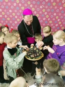 Наступнай часткаю сустрэчы стаўся канцэрт інструментальнага ансамбля скрыпачоў пад кіраўніцтвам арганісткі парафіі Валянціны Казакевіч. Маленькія скрыпачы са сваім музычным кіраўніком выканалі творы Моцарта і Бетховена. Разам з іерархам у суправаджэнні скрыпак і гітары заспявалі калядку “Ціхая ноч”. Біскуп Алег пачаставаў дзяцей і моладзь цукеркамі і тортам “Вожык”, што на сваіх іголках быў «перагружаны» вінаградам. Дзеці з радасцю падтрымалі прапанову Эксцэленцыі “дапамагчы вожыку” і яго “разгрузіць” – торт знік імгненна. Сустрэча закончылася агульнай малітвай і бласлаўленнем ардынарыя.