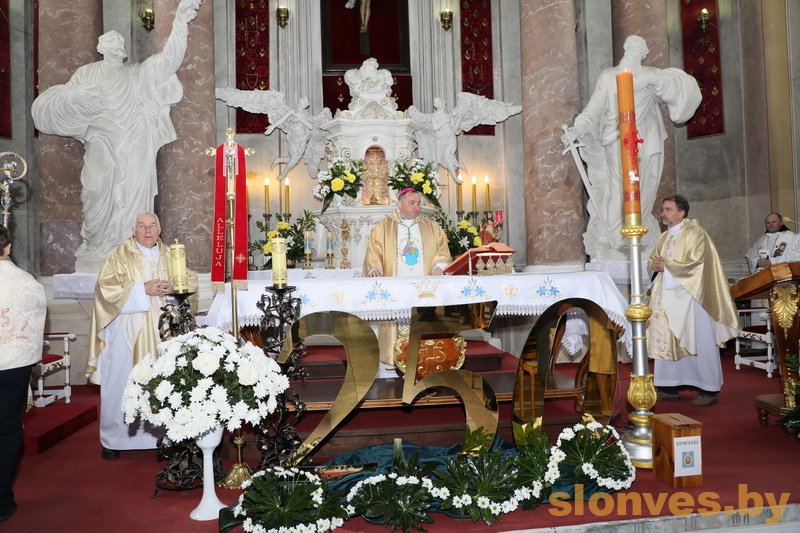 Нагадаўшы гісторыю слонімскай святыні, іерарх дадаў, што “нашых продкаў у іх стараннях хрысціянскага жыцця падтрымлівала Божая ласка”. Па яго словах, за 250 гадоў існавання гэтага касцёла свет вельмі змяніўся, але нязменнымі застаюцца “праўды веры, на якіх мы, хрысціяне, будуем наша жыццё”.