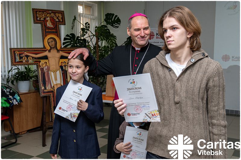Мерапрыемства пачалося з Эўхарыстыі, якую ўзначаліў біскуп Алег Буткевіч. На пачатку Імшы біскуп падзякаваў Дабрачыннай каталіцкай рэлігійнай місіі Карытас Віцебскай дыяцэзіі, яе дырэктару кс. кан. Віктару Місевічу за арганізацыю конкурсу і парафіі Святога Духа на чале з кс. кан. Валерыем Марціноўскім за гасцінны прыём. Таксама Яго Эсцэленцыя напомніў удзельнікам мэту конкурсу “Гэты 2025 год — абвешчаны годам надзеі. Ён нагадвае нам пра нашу галоўную мэту – Божае Валадарства, якое мае надысці. Праз гэту вялікую ласку, мы самі з’яўляемся пілігрымамі надзеі. Заклікаю вас не толькі жыць гэтай надзеяй на хуткае спатканне з Хрыстом, але быць яе сведкамі для іншых», — сказаў іерарх.