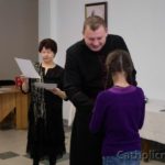 Біскуп Віцебскі Алег Буткевіч прывітаў сабраных вучняў, іх бацькоў і настаўнікаў. За лепшыя працы ўручыў дыпломы, а «Карытас» дыяцэзіі на чале з кс. Андрэям Аніскевічам пачаставаў юных творцаў салодкімі прысмакамі. Удзел у вернісажы ўзяў і кс. Віктар Місевіч.