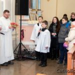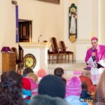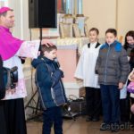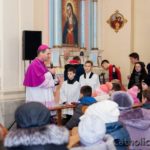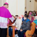 Распачаўся душпастырскі візіт сустрэчай з дзецьмі, якія ўдзельнічаюць у занятках па рэлігіі, іх бацькамі і катэхетамі. Дзеці адказна рыхтаваліся да сустрэчы і прывіталі біскупа вясёлым спевам. Каб лепш пазнаёміць кіраўніка дыяцэзіі з тым, як адбываецца катэхізацыя ў парафіі, старэйшая дзеці падрыхтавалі прэзентацыю, якую з цікавасцю паглядзелі ўсе прысутныя ў касцёле. Пасля гэтага кожны з дзяцей меў магчымасць асабіста задаць пытанне біскупу Алегу. У часе размовы з дзецьмі, біскуп звярнуў увагу на тое, што ў касцёле зараз Адвэнт – час чакання на прыход Збавіцеля – час, які варта выкарыстаць, каб як мага лепш падрыхтавацца да сустрэчы з Езусам. А пры гэтым, перш за ўсё, трэба памятаць пра падрыхтоўку свайго сэрца на прыход Божага Сына, які народзіцца, як маленькае Дзіця. Сам Езус пажадаў быць бліжэй да нас, таму мы можам сустрэцца з Ім у сакраманце Эўхарыстыі, калі прымаем Яго ў сваё сэрца. Напрыканцы сустрэчы дзеці падзякавалі біскупу Алегу за сустрэчу і пажадалі Божага бласлаўлення ў працы і сіл.