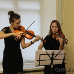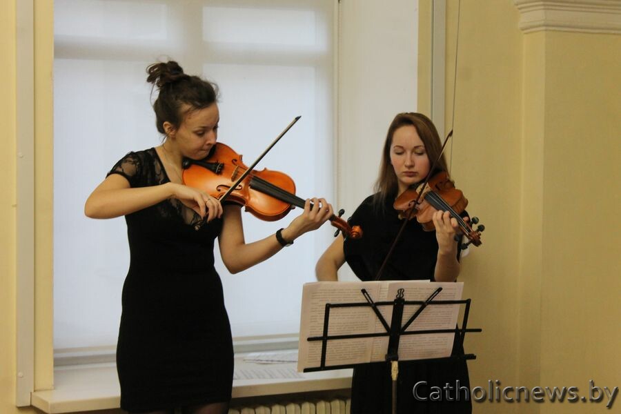 Святочны настрой надавала музыка ў выкананні студэнтаў музычнага каледжа імя Івана Салертынскага: Юліі Сабалеўскай і Вольгі Кашко.