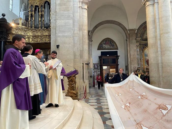 — У Венецыі ёсць брацтва св. Марка», — распавёў кс. Бэнэдыкт Свідэрскі OFM, міністр правінцыі св. Арханёла Міхаіла братоў меншых ва Украіне. — Яго настаяцель Марыё По — вялікі прыхільнік нашага народа і аўтар кнігі пра Украіну, сябар нашай правінцыі. Такім бачным знакам ён хацеў выказаць еднасць і салідарнасць італьянскага народа з народам украінскай зямлі падчас вайны: падарыць Украіне сертыфікаваную копію Турынскай плашчаніцы.