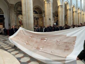 — У Венецыі ёсць брацтва св. Марка», — распавёў кс. Бэнэдыкт Свідэрскі OFM, міністр правінцыі св. Арханёла Міхаіла братоў меншых ва Украіне. — Яго настаяцель Марыё По — вялікі прыхільнік нашага народа і аўтар кнігі пра Украіну, сябар нашай правінцыі. Такім бачным знакам ён хацеў выказаць еднасць і салідарнасць італьянскага народа з народам украінскай зямлі падчас вайны: падарыць Украіне сертыфікаваную копію Турынскай плашчаніцы.